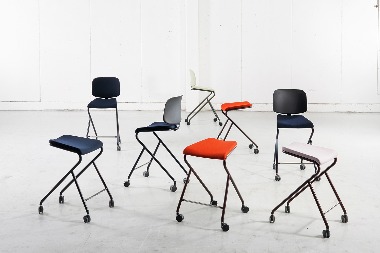 Der Add Stuhl und der Barhocker sind mit oder ohne Rollen erhältlich und bieten Flexibilität und optimalen Komfort für eine längere Nutzung. Der Barhocker und der kompakte Beistelltisch der Serie sind ideal für dynamische Umgebungen, in denen die Mobilität der Möbel von entscheidender Bedeutung ist. Die Add Aufbewahrungseinheit ergänzt und verbessert die Bibliothekseinrichtung.