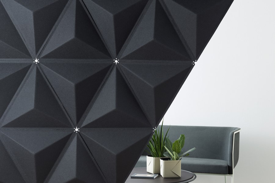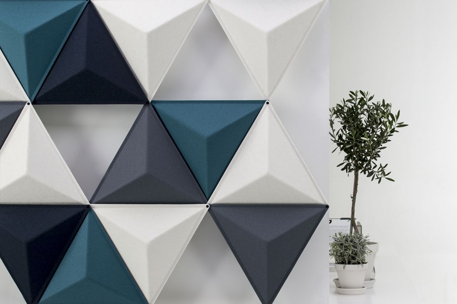 Die schönen und funktionalen dreieckigen Module bieten die Möglichkeit, private Arbeitsbereiche zu schaffen oder verschiedene Bereiche innerhalb der Bibliothek zu trennen, ohne die Ästhetik zu beeinträchtigen. Die Module werden mit kleinen Kunststoffverbindern zusammengefügt.
