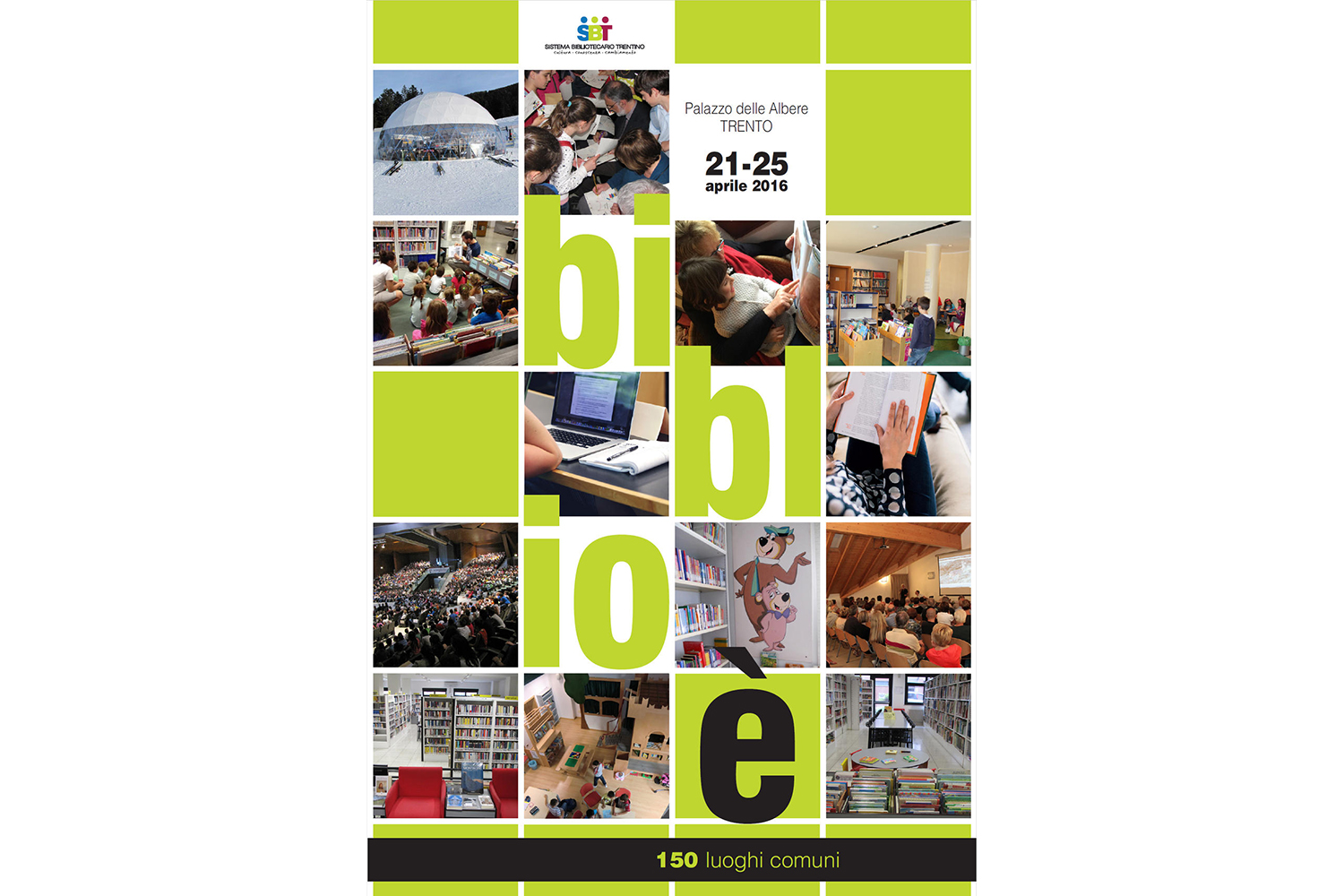 Das Amt für kulturelle Angelegenheiten der autonomen Provinz Trient und die Bibliotheken des Trientiner Bibliothekssystems, koordiniert vom Amt für das Trientiner Bibliothekssystem und Kulturelle Teilhabe, sind die Veranstalter der Biblioé 150 luoghi comuni, einem Ereignis, das die vielfältigen Ausdrucksmöglichkeiten und Aktivitäten einer wichtigen kulturellen Einrichtung zeigt, was aktuell in der globalen Informationswelt die Bibliotheken sind.