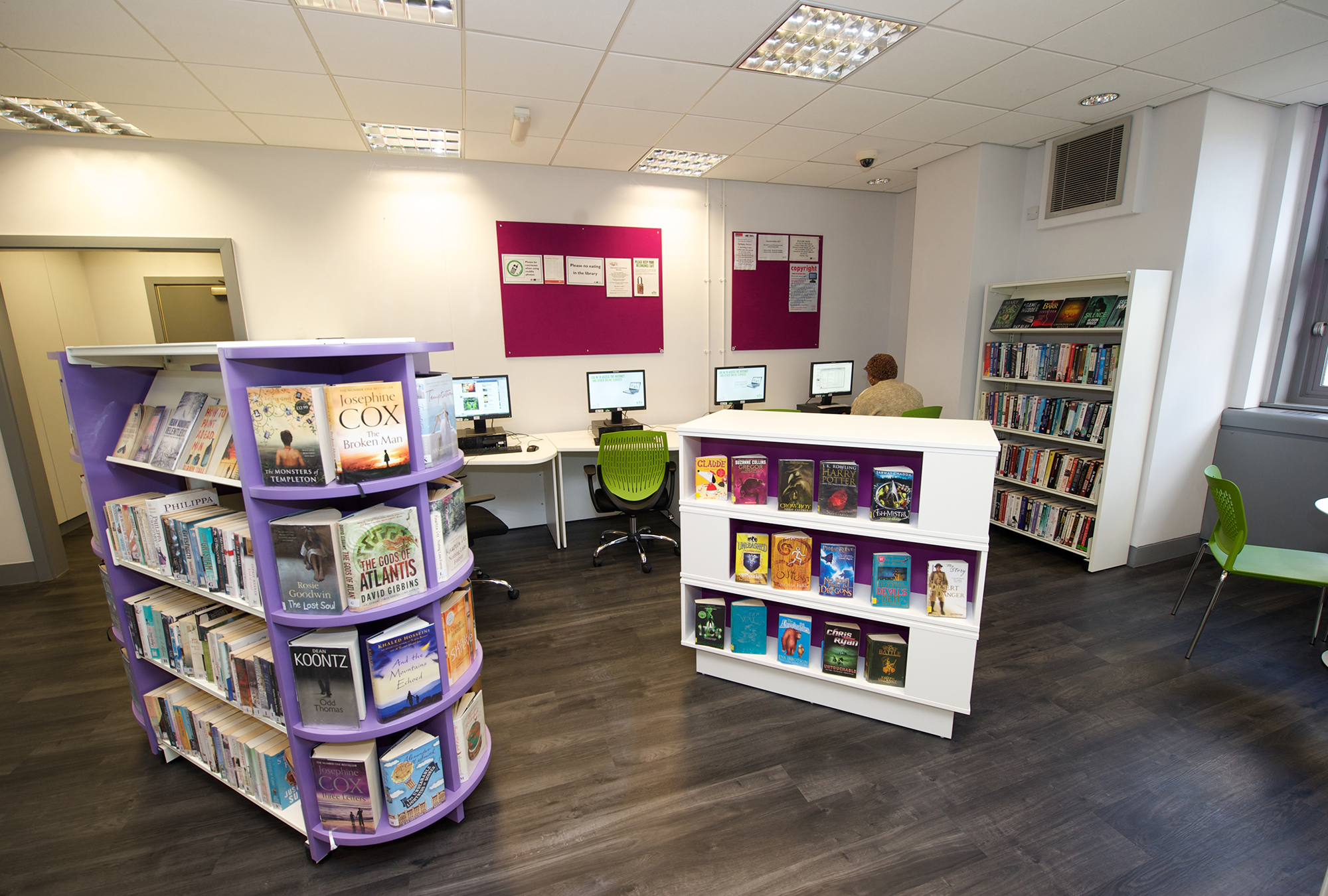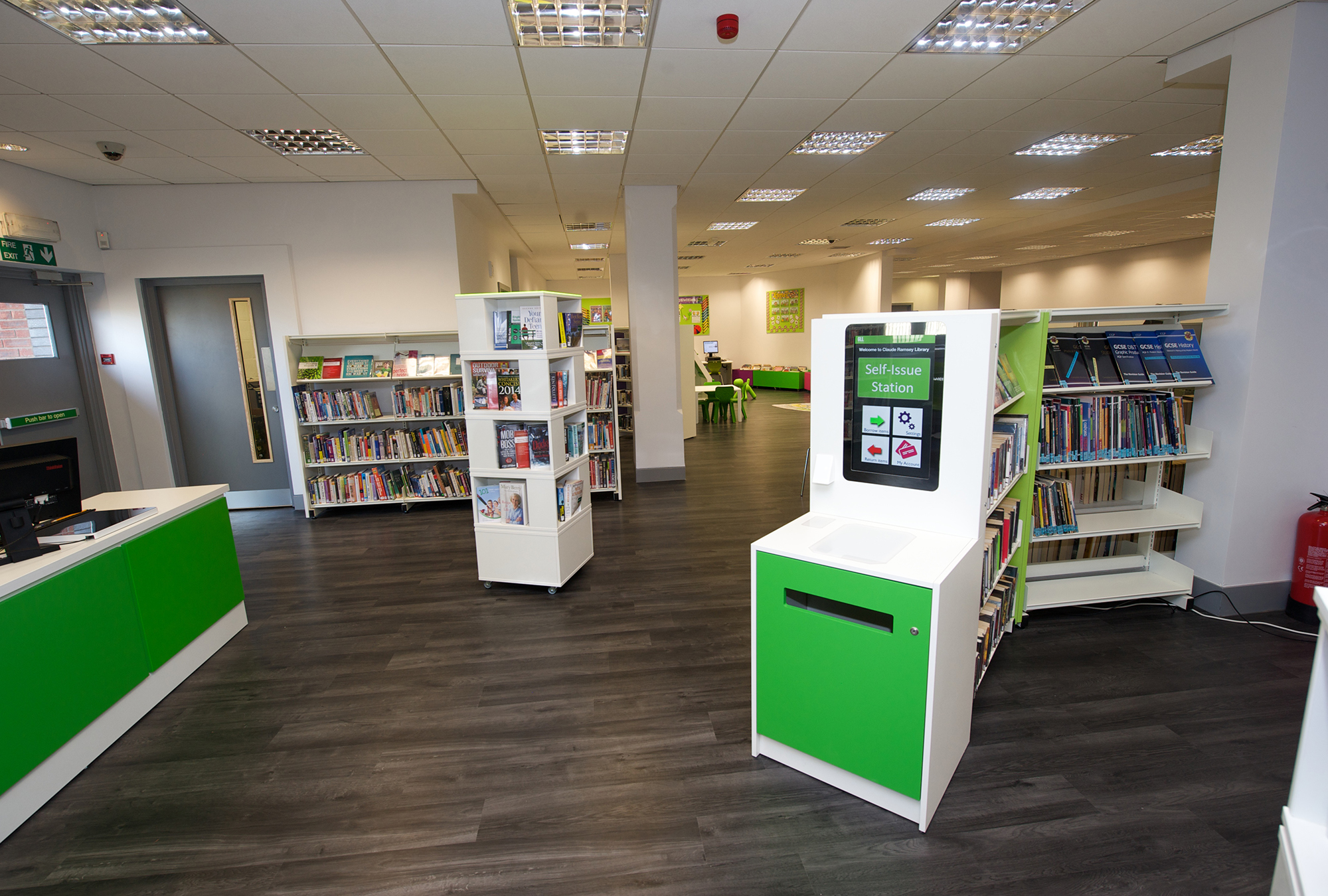 Die Bibliothek, in gemeinsamer Unterbringung mit dem Thamesmere Leisure Centre, war jedoch von diesem durch eine Wand abgetrennt. Als der Hauptempfangsbereich zur Renovierung anstand, hat unser Kunde, Diana Edmonds, Leiterin der Bibliotheken in Greenwich, die Gelegenheit wahrgenommen, dass auch die Bibliothek eine Auffrischung und Umgestaltung erfährt. Ihre Vision war es, die Grenzen zwischen Bibliothek und Leisure Centre aufzuheben und die Bibliothek in direkter Front vor den in dem Centre angebotenen Diensten zu positionieren.