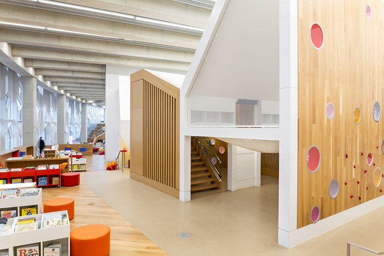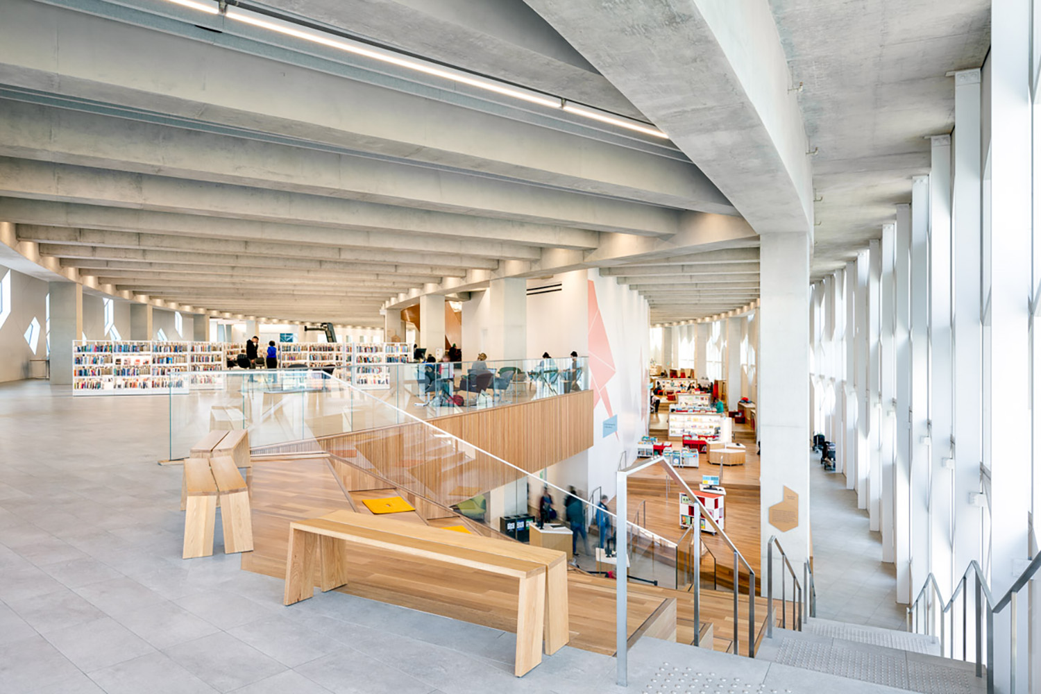 Mit einer Fläche von 22.000 qm ist dieser außergewöhnliche Bau der perfekte Ort zum Lesen, Studieren und Kommunizieren. Er verfügt über die Kapazität zur Unterbringung von 450.000 Titeln und erfüllt die vielfältigen Nutzungsbe-dürfnisse einer heutigen Bibliothek mit einer riesigen Anzahl von Lese-, Lern- und Gemeinschaftsräumen, einer Veranstaltungshalle und einer Outdoor-Zone.