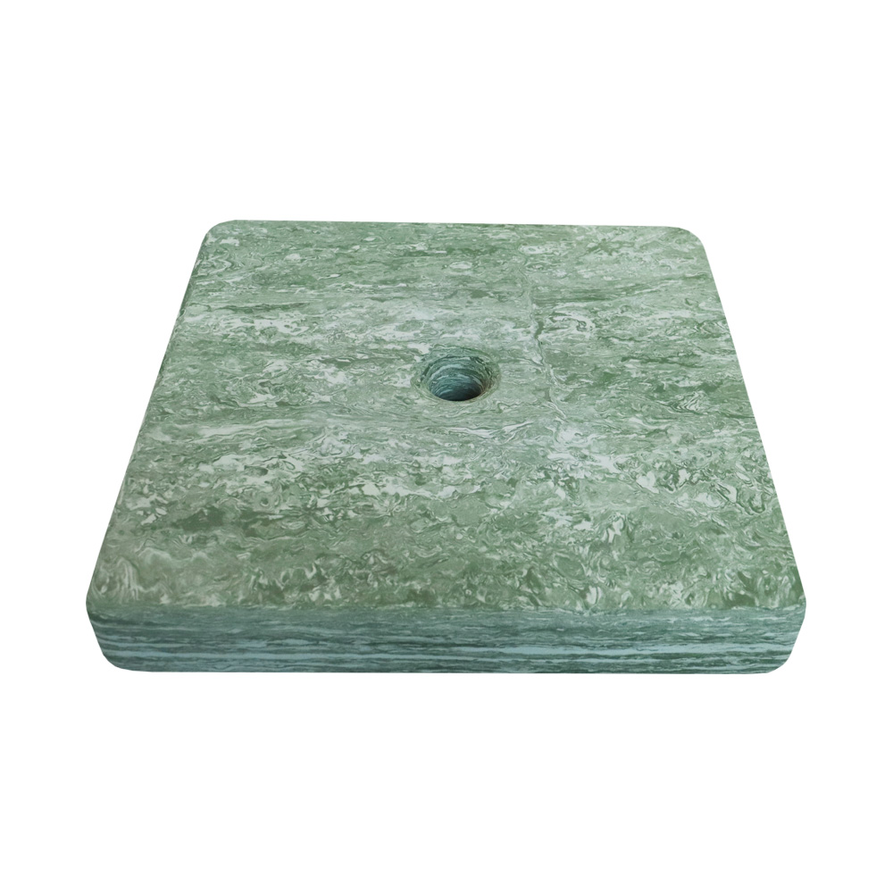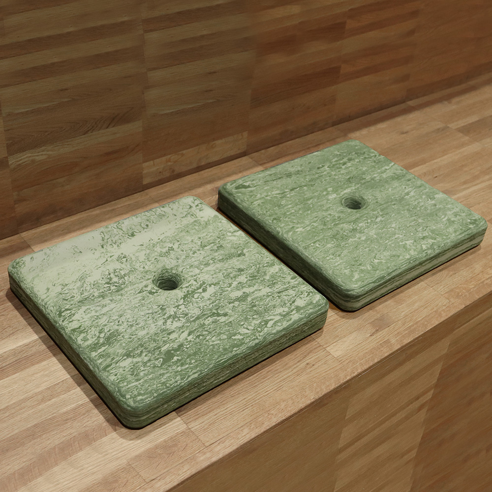 Das Kissen ist erhältlich in verschiedenen marmorierten Farben, inspiriert von der Natur. Ideal zur Nutzung auf dem Boden, auf Bänken und Podien.