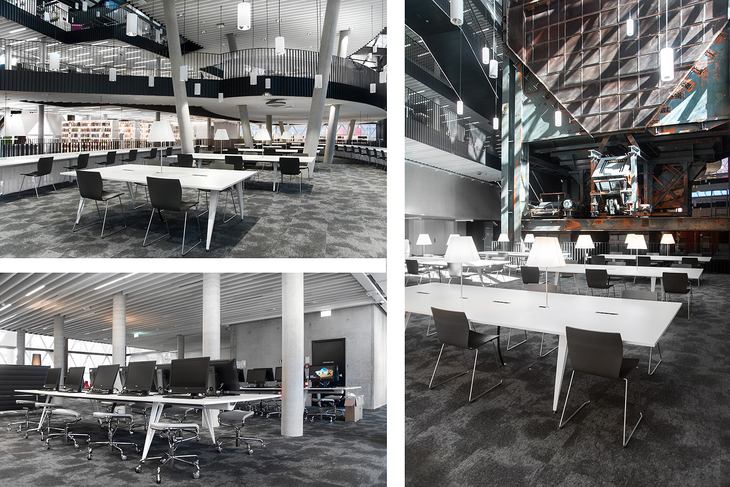 Der Attach-Tisch vereint Einfachheit und Funktionalität in einem eleganten Design, das sich perfekt für Studien- und Arbeitsbereiche in Bibliotheken eignet. Dank seiner minimalistischen Ästhetik und robusten Konstruktion ist Attach ideal für Lese- und Gruppenarbeiten.