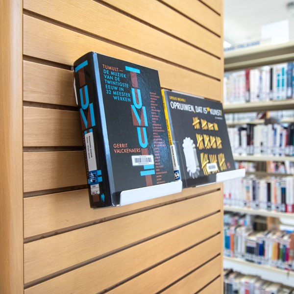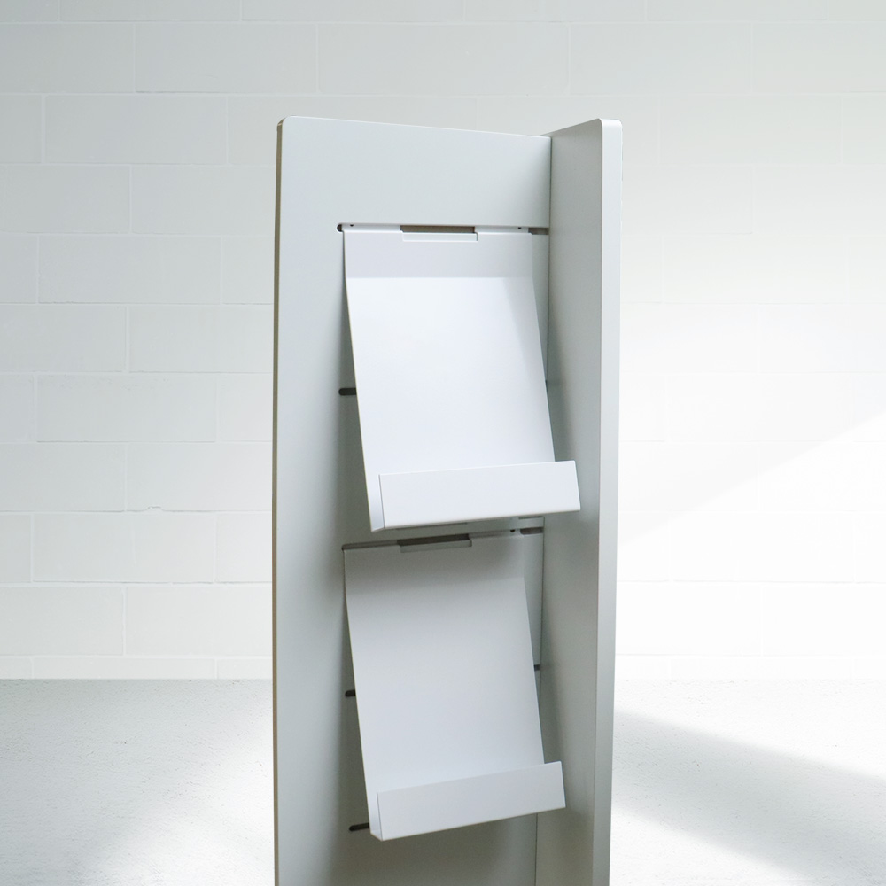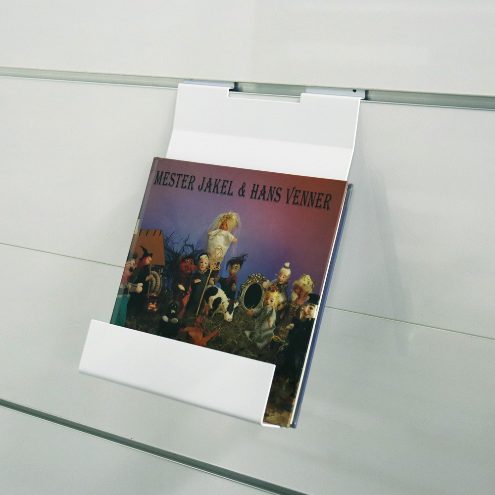 Die Halter lassen sich leicht bewegen, um flexible Ausstellungslösungen für Bücher, AV-Media wie CD/DVDs, Magazinen, Brochuren, usw. zu erstellen.