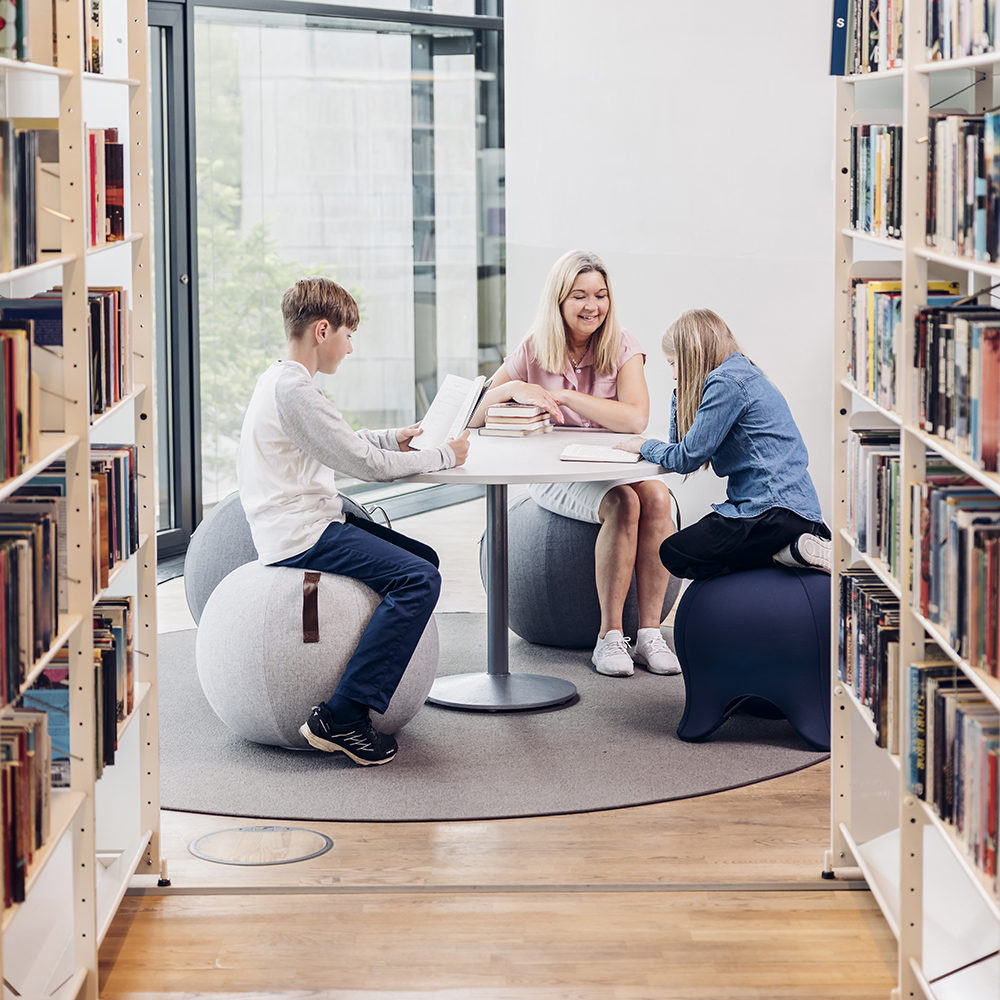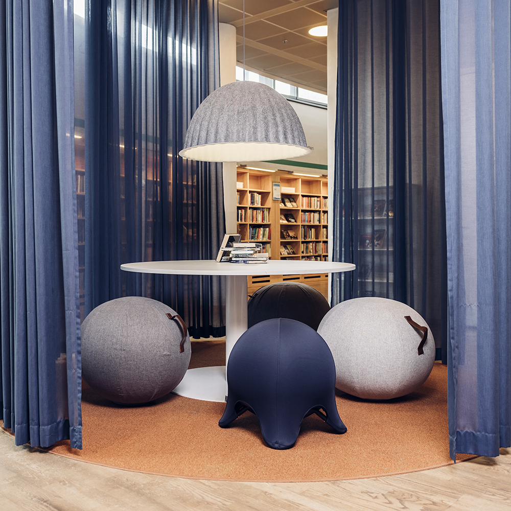 Der Ball kann auch hervorragend als Ergänzung von anderen Lesemöbeln in Studienbereichen dienen und hier auch anstelle von normalen Stühlen verwendet werden. Auch bei kleineren Gruppen kann eine Verwendung des Balance Ball eine etwas andere Art des Zusammensitzens darstellen.