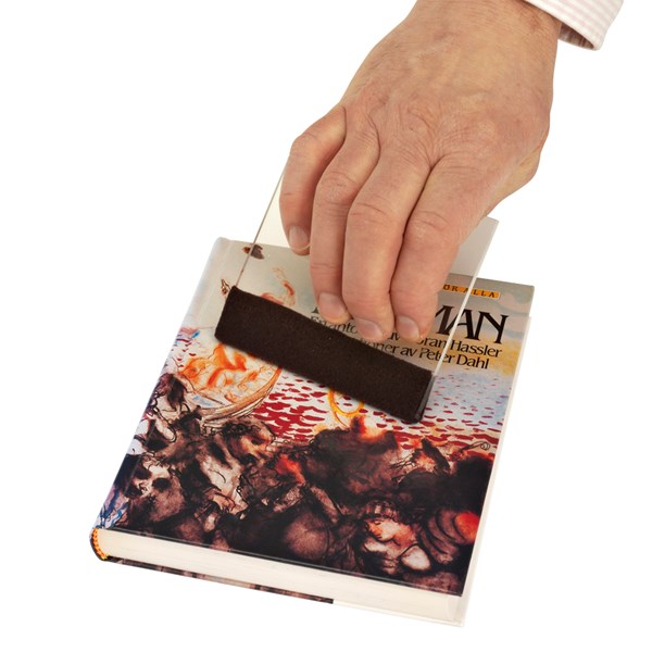 Praktisches Universalrakel mit Filzkante für die Bücherpflege. Damit wird sichergestellt, dass die Folie richtig an der Unterlage anliegt. Falten und sonstige Unebenheiten wie Luftblasen werden ausgeglichen.