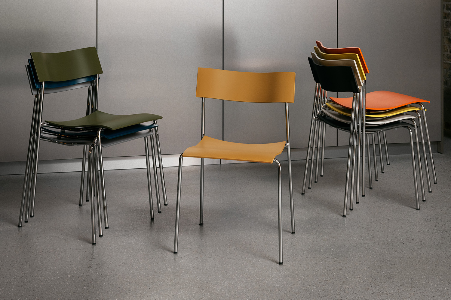 Der Stuhl lässt sich stapeln und mühelos mit einem Stuhlwagen transportieren, wodurch er auch für Büroräume und öffentliche Bereiche geeignet ist.