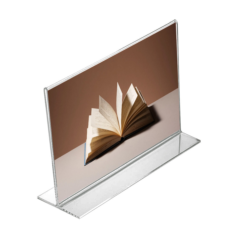 Praktischer doppelseitiger Infohalter in verschiedenen Formaten für Tische, Theken, Fenster und Regale..