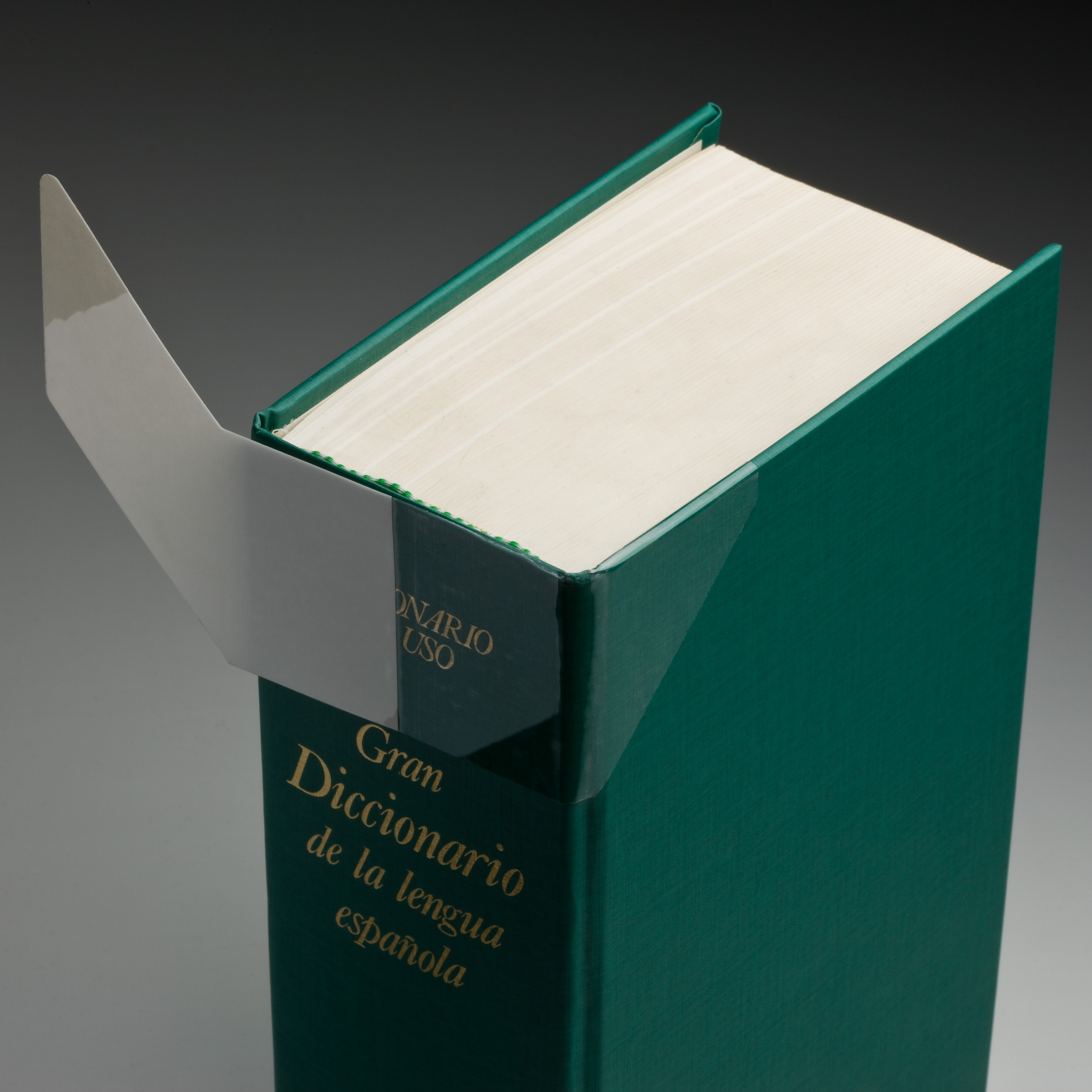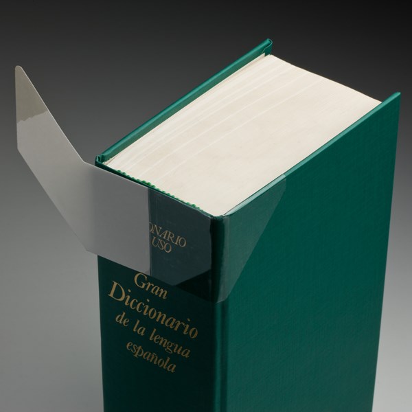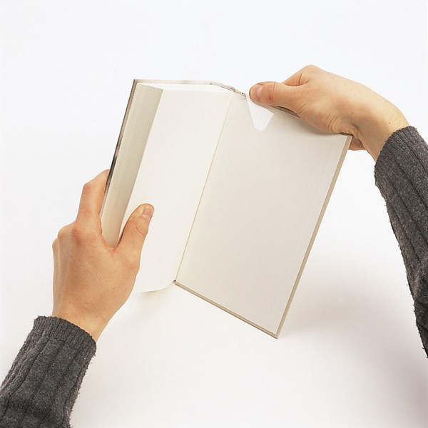Selbstklebender Buchrückenverstärker mit patentiertem Mitteltrennschnitt.