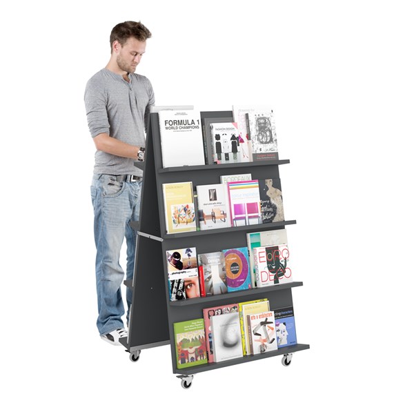 Mit unserem mobile A-Display können Sie Bücher einfach in grossen Bereichen oder im Eingangsbereich präsentieren. Platzieren Sie es einzeln oder in Gruppen.