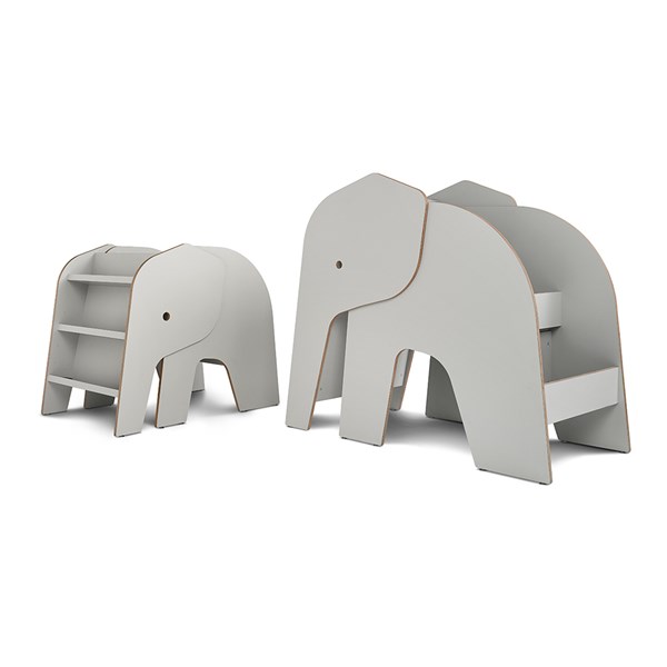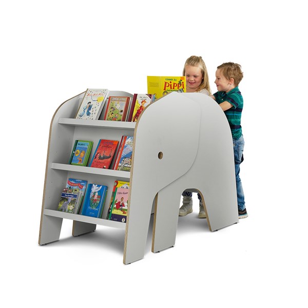 Bilderbuchtrog zur Präsentation und Aufbewahrung von Büchern. Auf einer Seite ist Elof mit drei versetzbaren Fachböden mit Vorderkante ausgestattet. Die andere Seite besteht entweder aus zwei Fächern jeweils mit einer Trennwand oder einem Leseplatz.