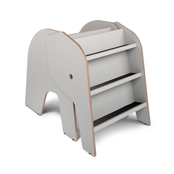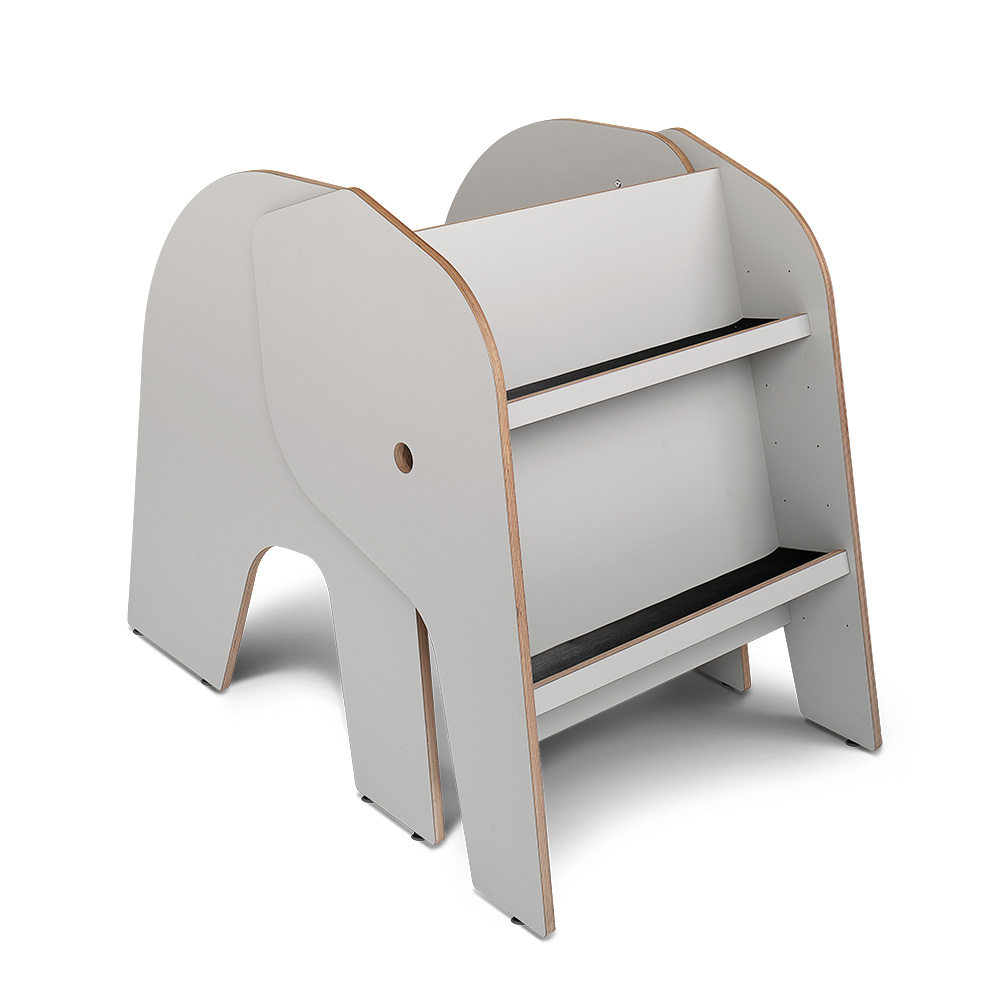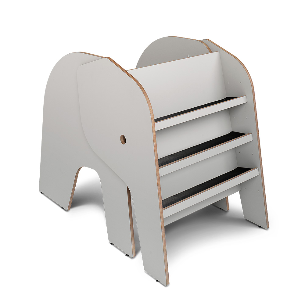 Bilderbuchtrog zur Präsentation und Aufbewahrung von Büchern. Auf einer Seite ist Elof mit drei versetzbaren Fachböden mit Vorderkante ausgestattet. Die andere Seite besteht entweder aus zwei Fächern jeweils mit einer Trennwand oder einem Leseplatz.