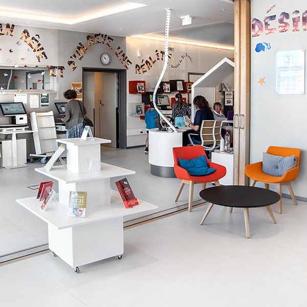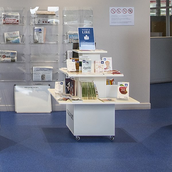 Funktionelles, vielseitiges Podium zur Präsentation von Büchern und/oder anderen Medien.
