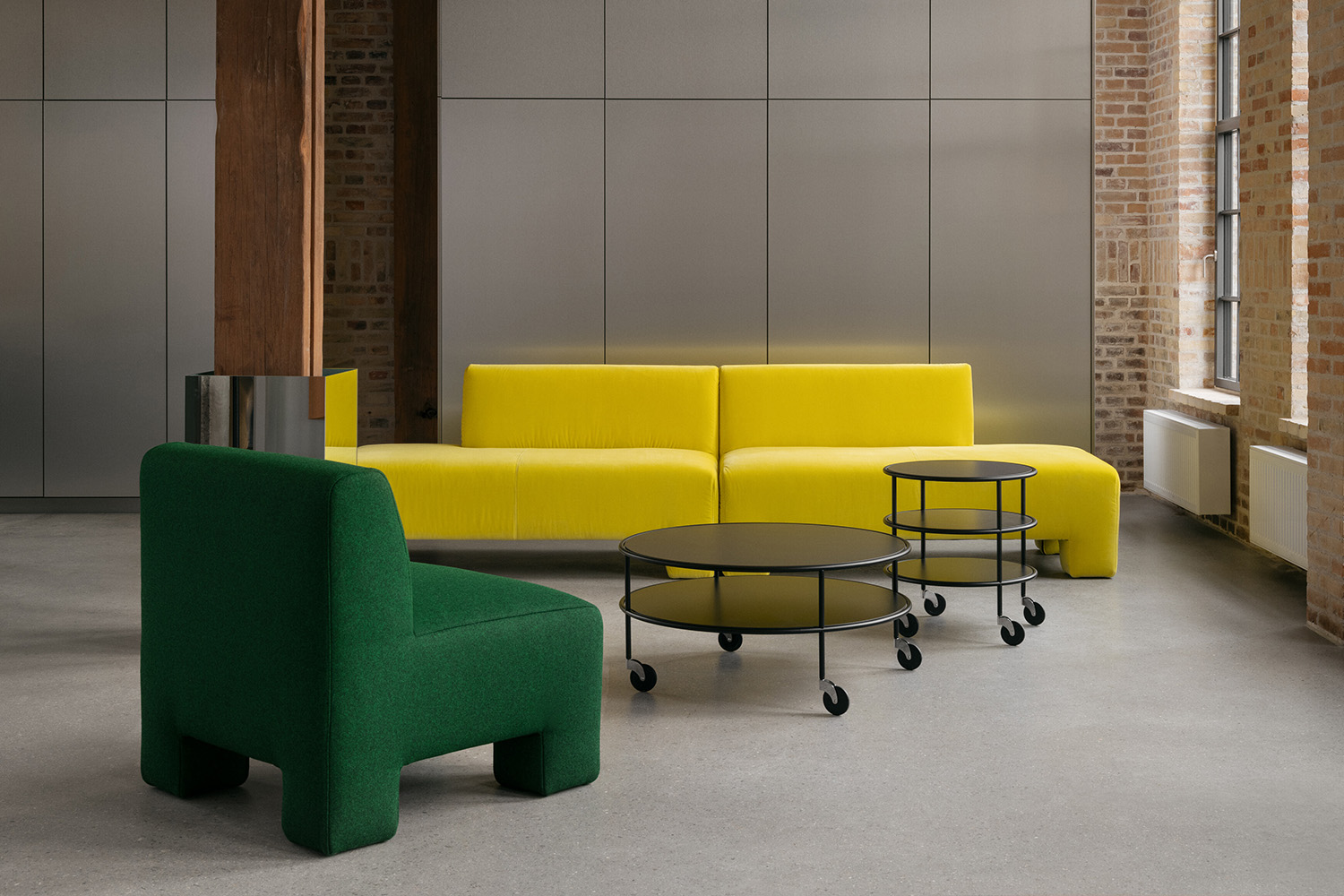 Geofanti besteht aus acht verschiedenen Modulen, von 1- bis 2-Sitzer-Einheiten, die durch funktionale und anpassungsfähige Varianten überzeugen. Die Module zeichnen sich durch spielerisch abgewinkelte Armlehnen und stabile, elefantenartige Beine aus.