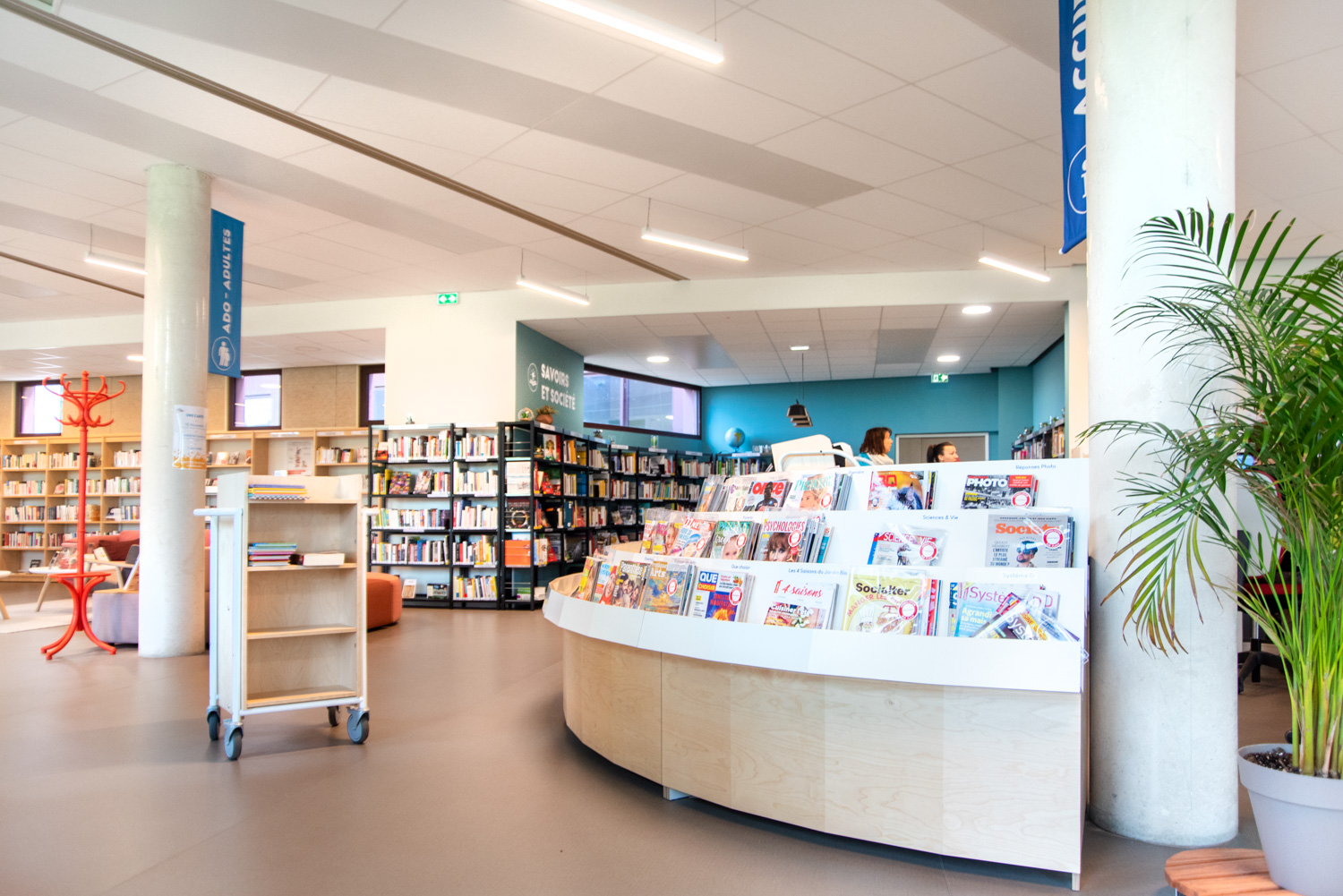 Diesen Bücherwagen kann man als fahrbares Miniregalsystem einsetzen - überall in der Bibliothek, wo es gerade gebraucht wird.