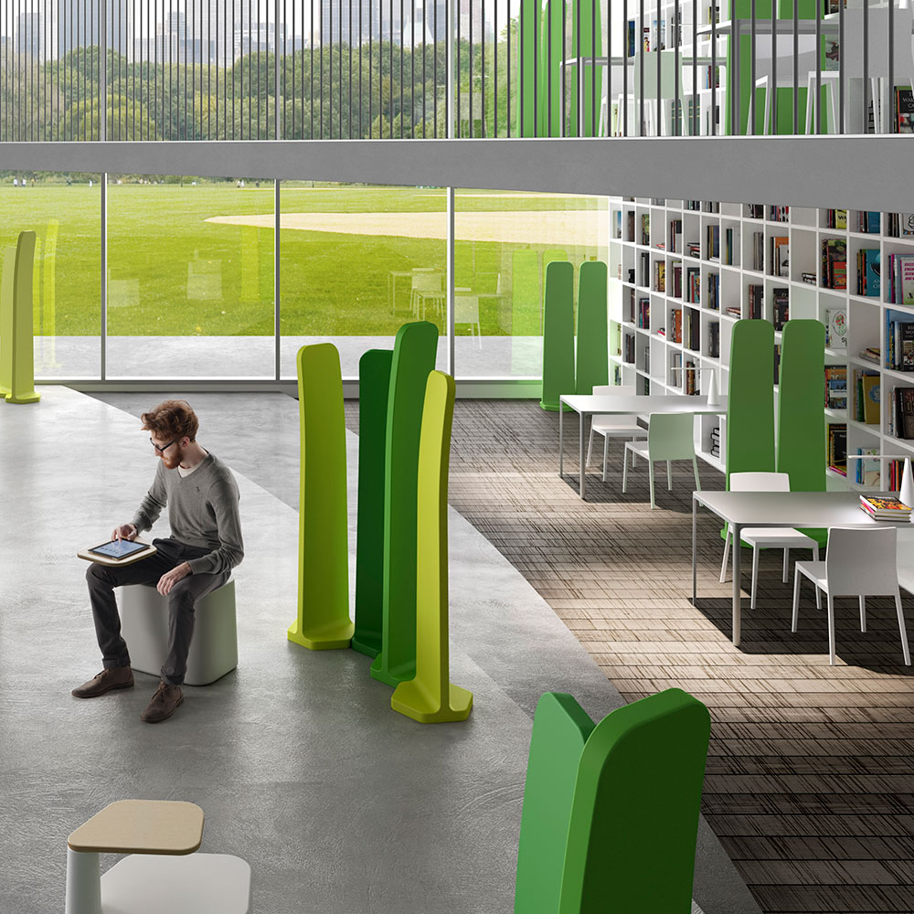 Gradient Raumteiler sind in zwei unterschiedlichen Höhen, mit sechseckigen Füßen, und in zwei schönen Grünfarbtönen oder komplett in weiß lieferbar.