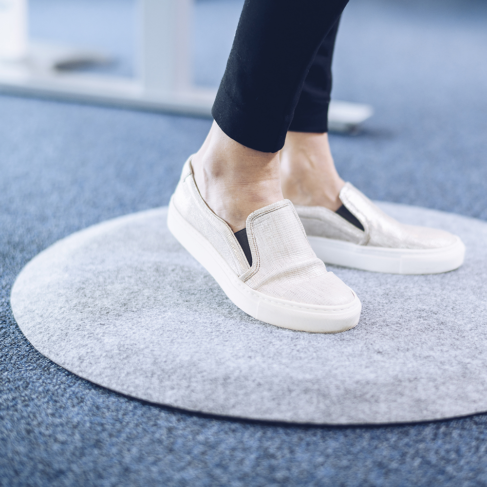 Das Kissen hat auch die Funktion einer ergonomischen Standfläche, durch die man die Spannung in Körper und Beinen reduzieren kann während man steht. Gerade bei Mitarbeitern oder Besuchern, die seinen ganzen Tag stehen oder viel gehen wird dies geschätzt, da es einerseits die Blutzirkulation anregt und andererseits den Druck auf Wirbelsäule und Füße reduziert.