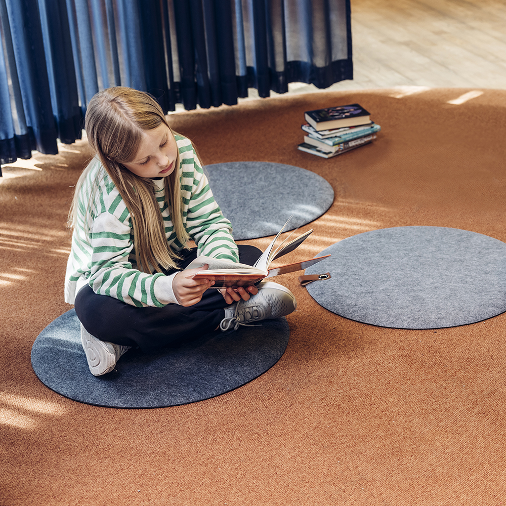 Ein haltbares, druckentlastendes Filz-Bodenkissen mit Antirutsch-Unterseite, welches zur Geräuschdämmung im Kinderbereich dient und zum Lernen und Spielen anregt.
