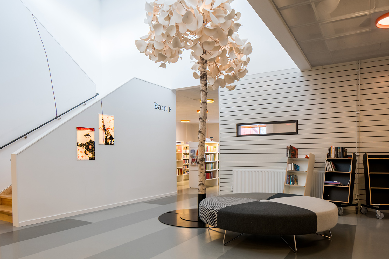 Hier geht es um laminiertes Birkensperrholz, auf dem Foto mit sichtbaren Kanten. Damit lassen sich eine strapazierfähige Oberfläche und eine langlebige Konstruktion erzielen. Ideal für die meisten stark beanspruchten Bibliotheksumgebungen!