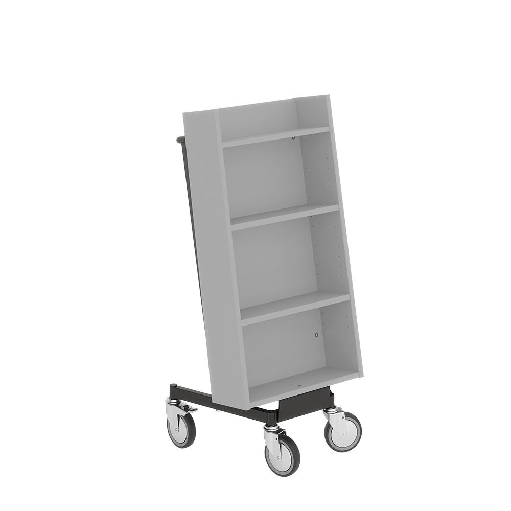 Die Neigung des Bücherwagens sorgt für eine sichere Medienunterbringung und bietet eine gute Übersicht über die jeweiligen Bücher.