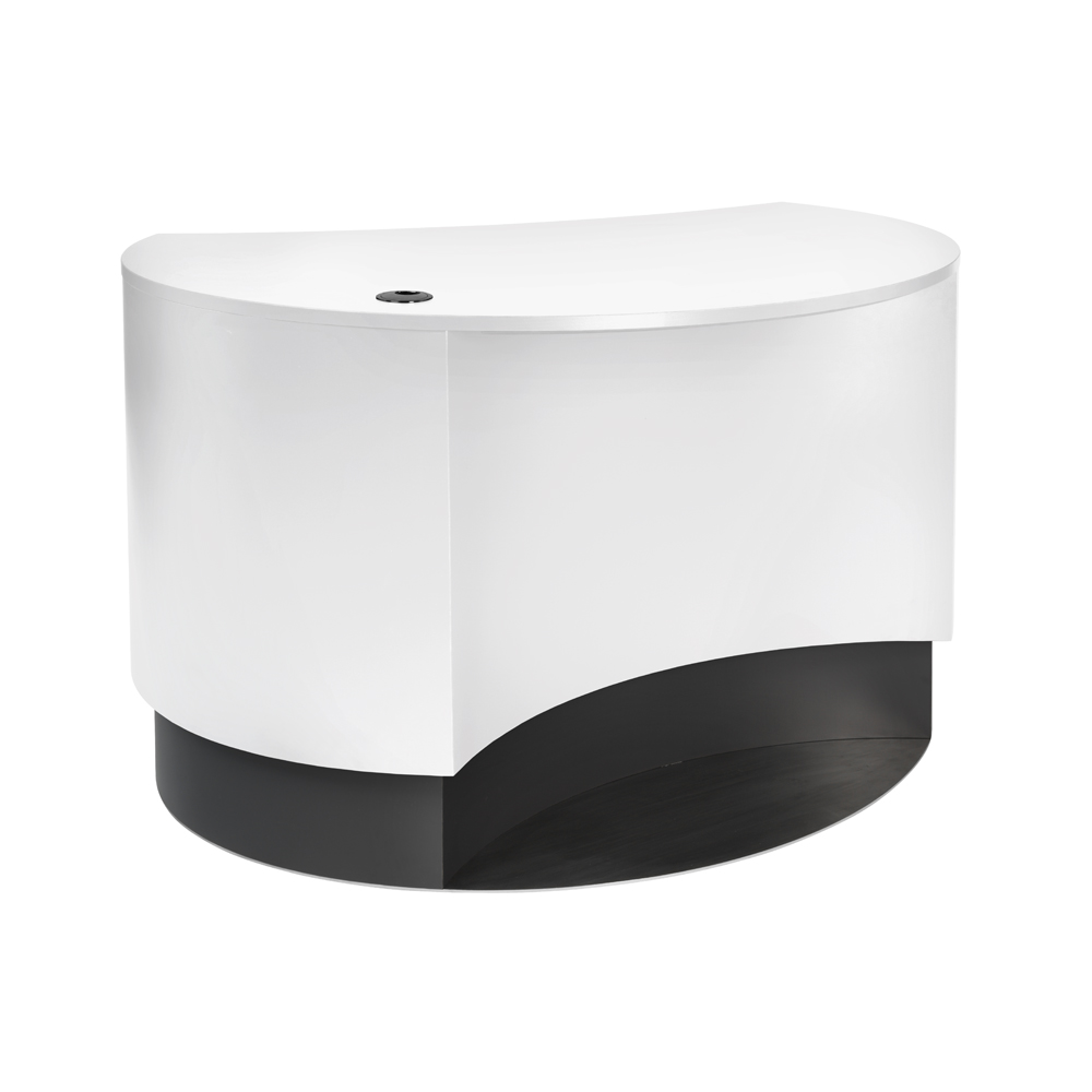 Stilvolle, funktionelle und kompakte Theke mit ovaler, zurückgesetzter Front.