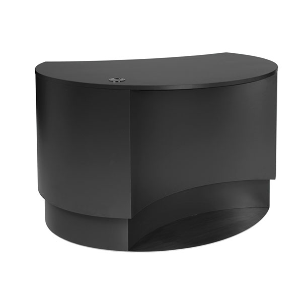 Stilvolle, funktionelle und kompakte Theke mit ovaler, zurückgesetzter Front.