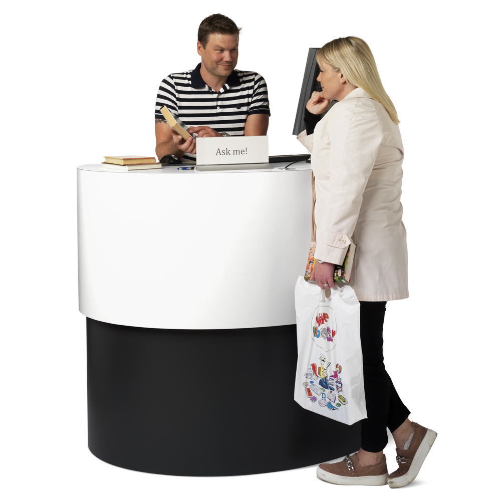 Ideal als Info-Theke bzw. Arbeitsstation in größeren Bibliotheken oder als Empfangstheke in der Schulbibliothek.