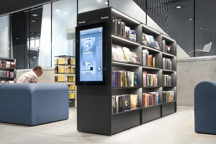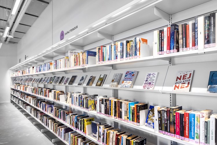 Die nachgerüstete Beleuchtung der Regale in der Bibliothek von Avedøre in Dänemark macht einen großen Unterschied zum gesamten Ambiente der Bibliothek.