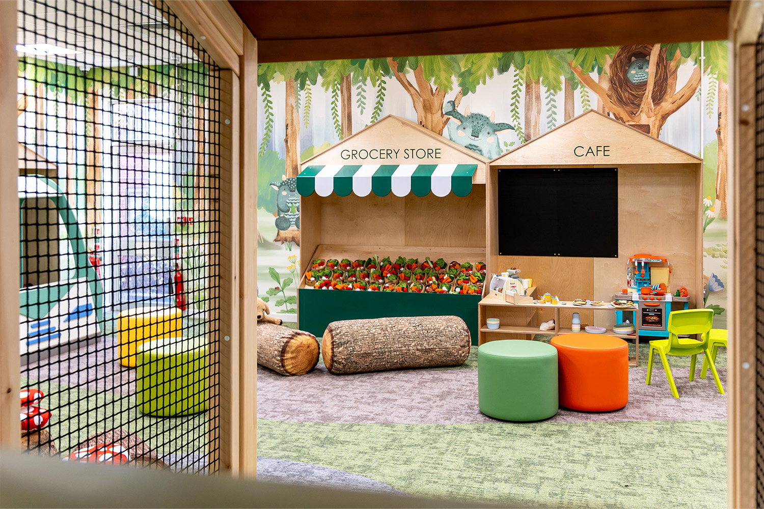 Diese einladende Umgebung verfügt über eine Reihe interaktiver Elemente, die Neugier und Lernfreude wecken sollen, darunter Glasfaserstränge für taktile Interaktion und projizierte Spiele für visuelle Beschäftigung. Eine spielerisch gestaltete Ladenfront regt Kinder jeden Alters dazu an, durch fantasievolles Spielen frühzeitig mathematische und kommunikative Fähigkeiten zu entwickeln.