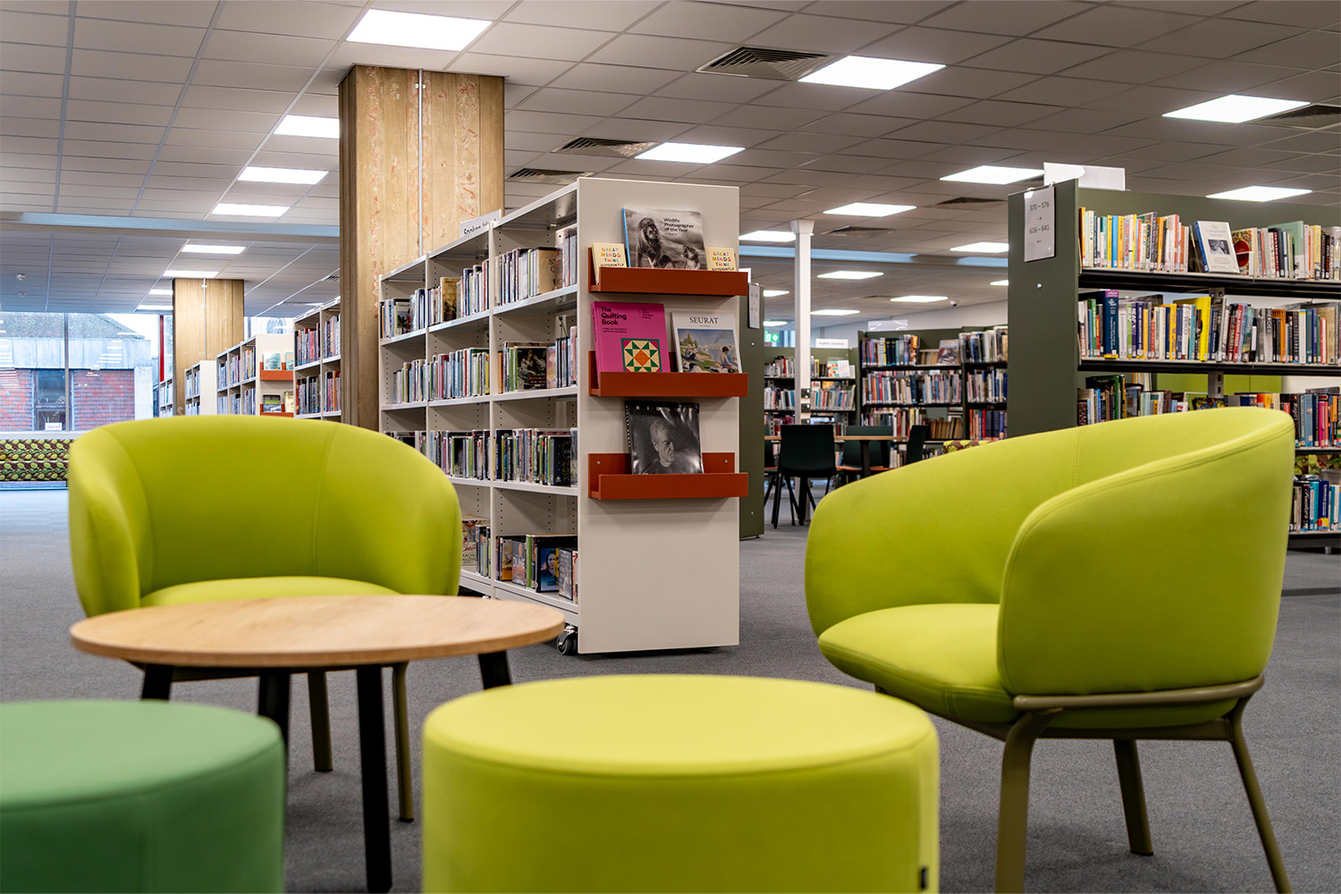 Im Mittelpunkt jedes Designs steht die Erkenntnis, dass Wissen Gemeinschaften stärkt. Die Förderung von Studium und Lernen war für die Schaffung einer benutzerfreundlichen Umgebung von entscheidender Bedeutung. Die Colchester-Bibliothek bietet nun alles, von Schnellauswahl-Displays für das zwanglose Stöbern bis hin zu gemütlichen, ruhigen Ecken für konzentriertes Arbeiten.