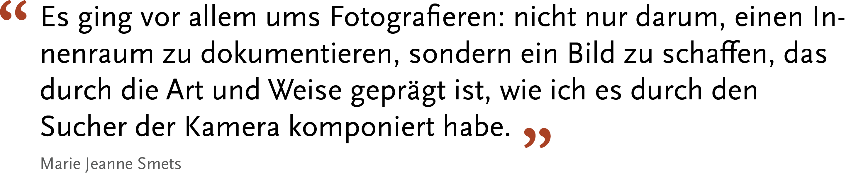 Der Weg zur Fotografie begann nicht mit einer Kamera, sondern mit Millimeterpapier und Innenraumskizzen. 1981 war Marie Jeanne Smets Mitbegründerin von Schulz Benelux, wo sie als Innenarchitektin für Projekte in der gesamten Benelux-Region verantwortlich war. Die Möbel für das Unternehmen wurden von Schulz Speyer in Deutschland geliefert, und schon damals war die grenzüberschreitende Zusammenarbeit ein selbstverständlicher Teil ihrer Arbeit.