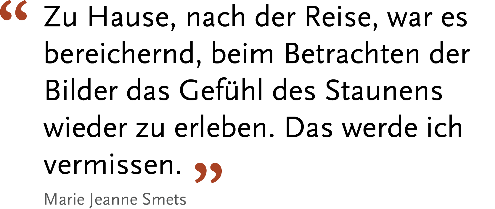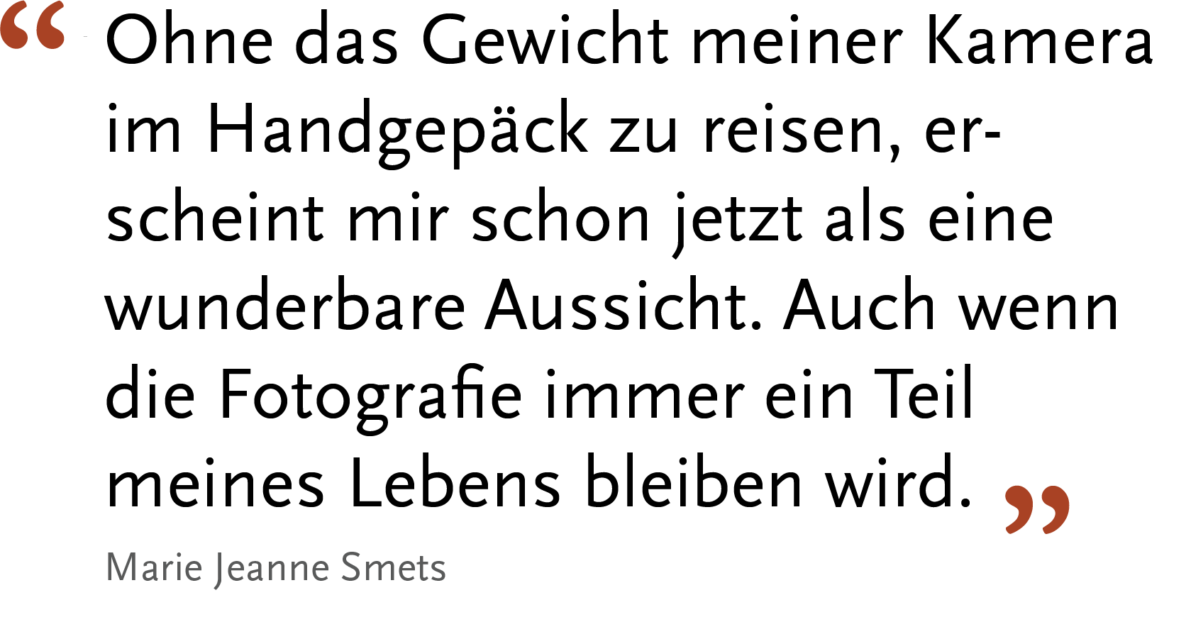 Nach Tausenden von Fotos und unzähligen Reisestunden schließt Marie Jeanne dieses Kapitel ihres Berufslebens ab. Ihre Leidenschaft für die Fotografie ist jedoch nach wie vor sehr lebendig.