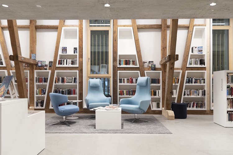 Wir sehen Bibliotheken in Zukunft als Räume, die sich weiterentwickeln und den Bedürfnissen der Gesellschaft im Allgemeinen entsprechen. Nachhaltigkeit wird eine immer größere Rolle spielen – von verantwortungsvoll bezogenen Materialien bis hin zu langlebigen Möbeln, die die Umweltbelastung reduzieren. Ebenso wichtig ist der Fokus auf die mentale Gesundheit in Bibliotheken, deren Innenräume so gestaltet sind, dass sie eine ruhige, harmonische Umgebung schaffen, die das mentale Wohlbefinden fördert. Biophiles Bibliotheksdesign – die Einbeziehung natürlicher Elemente wie Licht, Grünpflanzen und organischer Formen in die Bibliothek – wird auch weiterhin zukünftige Projekte prägen und die Bibliothek als einen Ort stärken, an dem sich Menschen inspiriert und wohl fühlen.