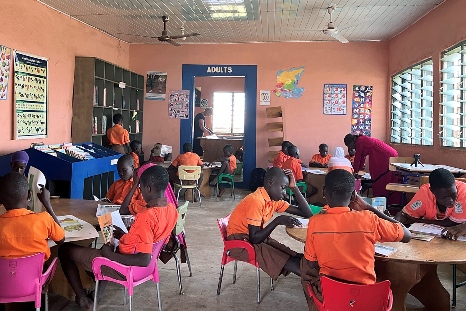 Anstatt sich Bücher zu leihen, um sie mit nach Hause zu nehmen, was in Ghana nicht üblich ist, treffen sich Kinder, Schulklassen, Jugendliche und Erwachsene in der örtlichen Bibliothek zum Lesen. So spielt die Bibliothek eine entscheidende Rolle bei der Einbeziehung der lokalen Gemeinschaft und der benachbarten Dörfer, wo die Menschen mit Fahrrädern unterwegs sind und die Flüsse in Kanus überqueren, um an den Bibliotheksaktivitäten teilzunehmen.