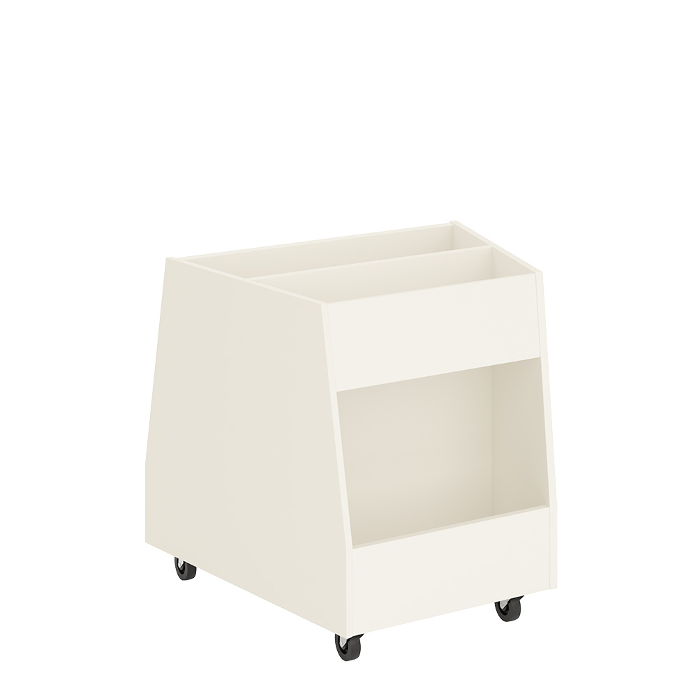 Kaja Trog ist ein doppelseitiges, trapezförmiges Buchdisplay, das speziell für moderne Kinderbibliotheken entwickelt wurde. Mit zwei Höhenebenen ermöglicht er Kindern unterschiedlichen Alters einen einfachen Zugang zu Büchern.