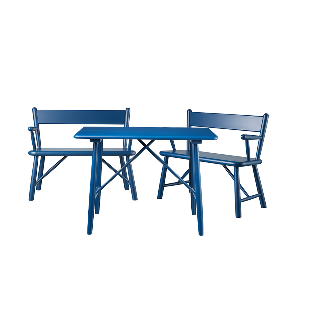 Die Möbel sind aus lackierter Buche gefertigt und erfordern nur minimale Pflege. Sie lassen sich mit einem feuchten Tuch abwischen.
