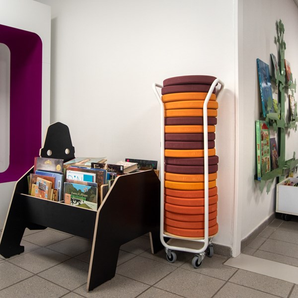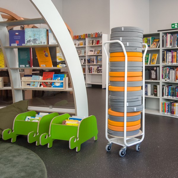 Transportwagen zur Aufbewahrung der Sitzkissen.
