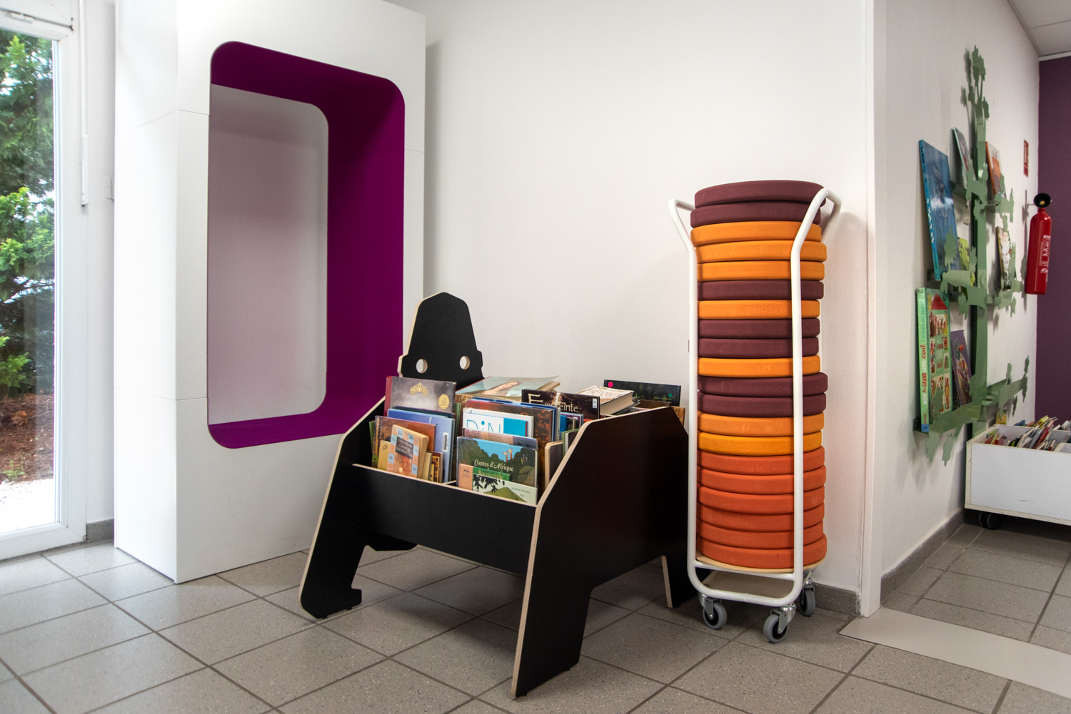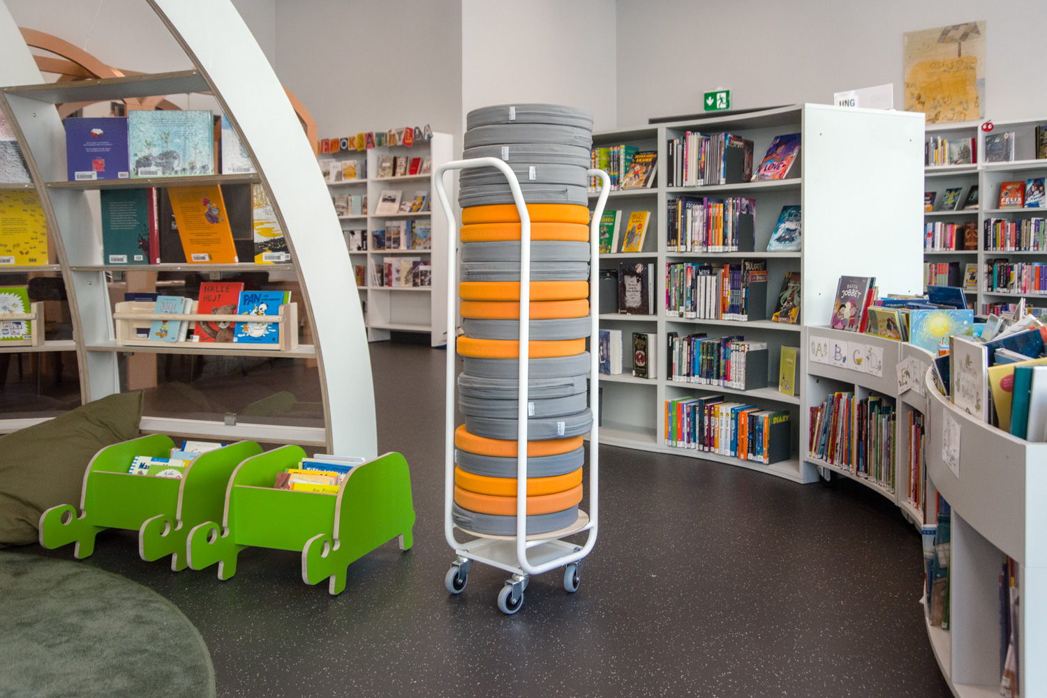 Transportwagen zur Aufbewahrung der Sitzkissen.