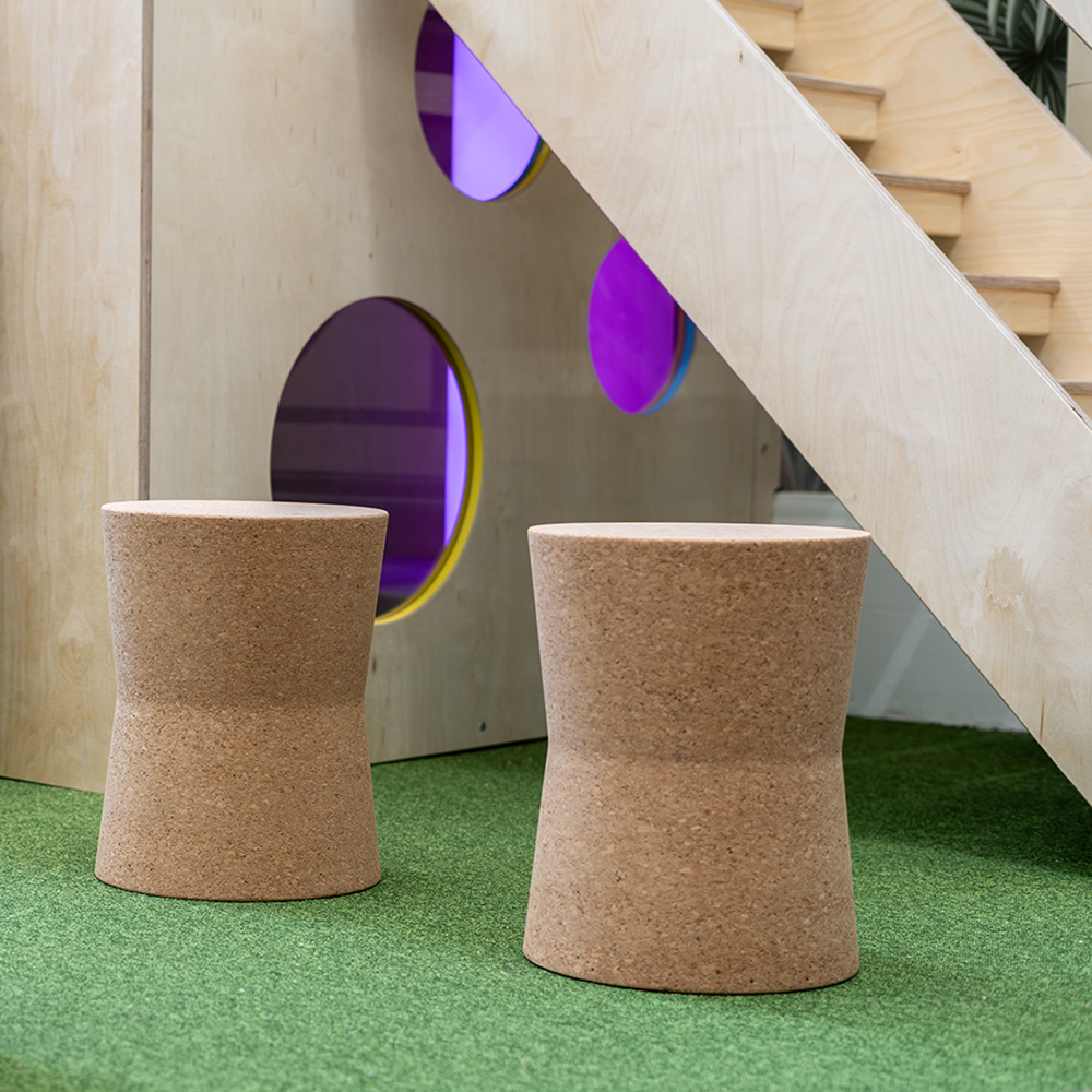Kork ist leicht zu reinigen, schallabsorbierend und feuerhemmend, was ihn perfekt für öffentliche Räume und insbesondere Kinderumgebungen macht.