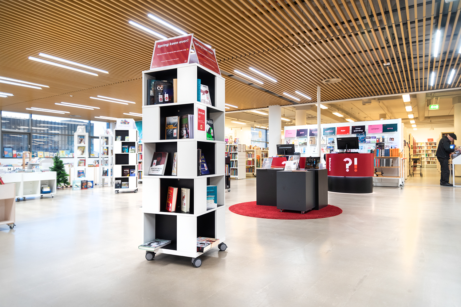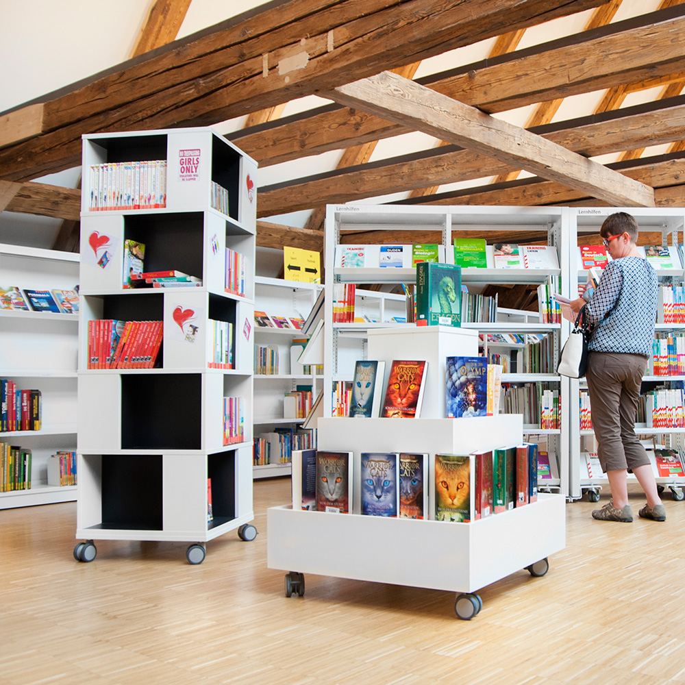 Ideal zur Aufbewahrung und Präsentation von Büchern, AV-Medien, etc. Gute Kapazität mit vier Fächern pro Ebene.