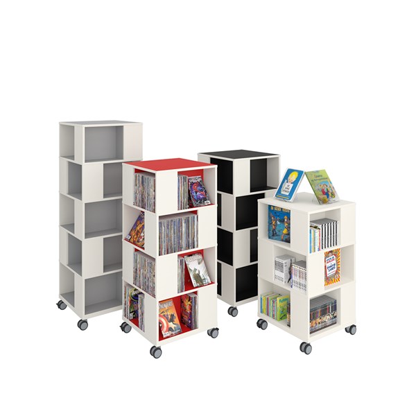 Ideal zur Aufbewahrung und Präsentation von Büchern, AV-Medien, etc. Gute Kapazität mit vier Fächern pro Ebene.