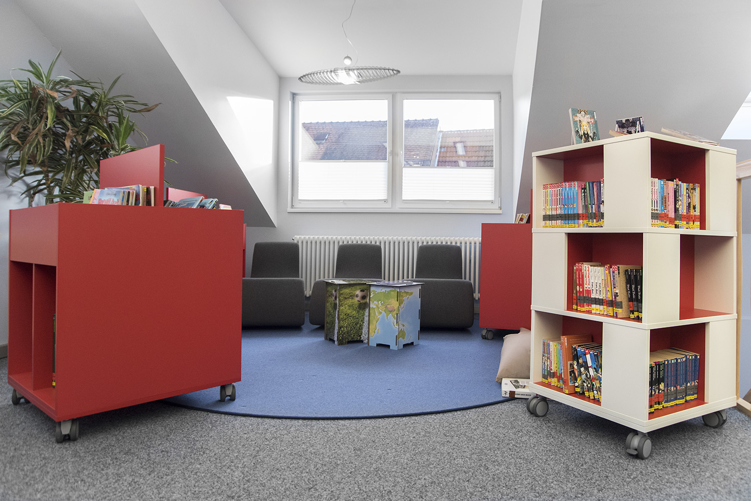 Ideal zur Aufbewahrung und Präsentation von Büchern, AV-Medien, etc. Gute Kapazität mit vier Fächern pro Ebene.