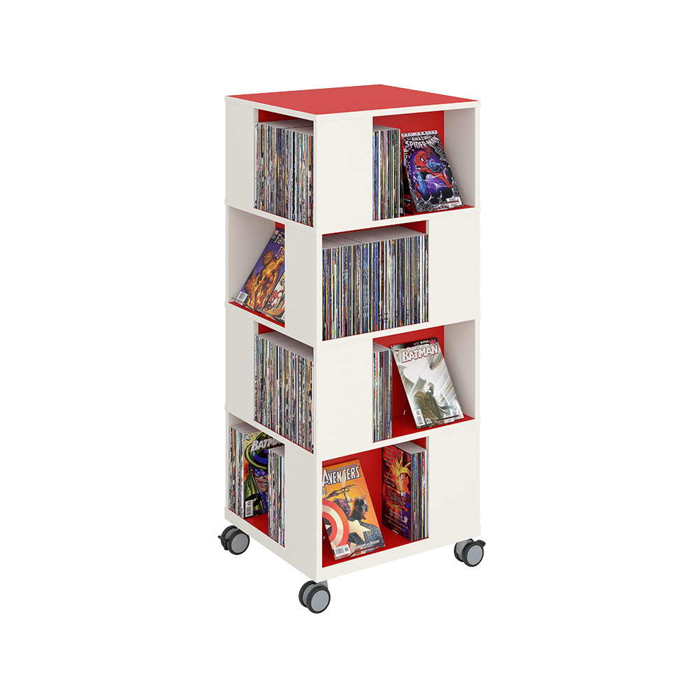 Ideal zur Aufbewahrung und Präsentation von Büchern, AV-Medien, etc. Gute Kapazität mit vier Fächern pro Ebene.