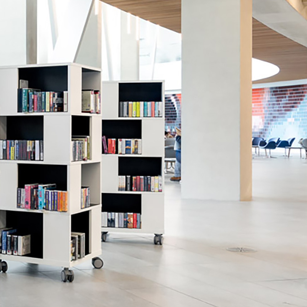 Ideal zur Aufbewahrung und Präsentation von Büchern, AV-Medien, etc. Gute Kapazität mit vier Fächern pro Ebene.