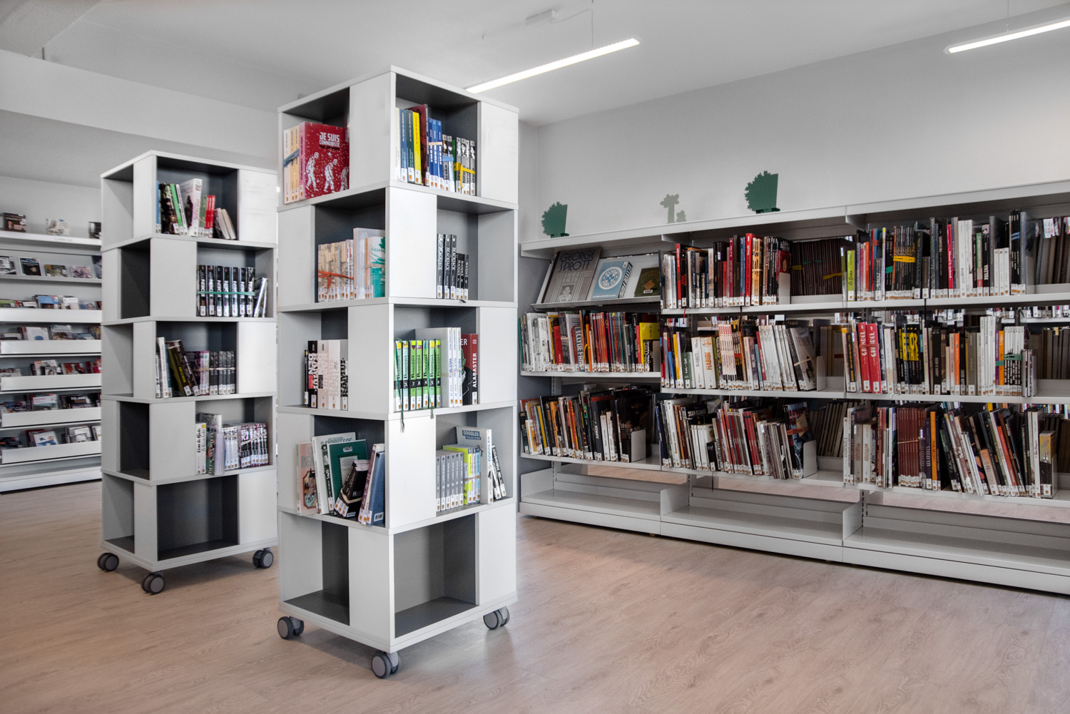 Ideal zur Aufbewahrung und Präsentation von Büchern, AV-Medien, etc. Gute Kapazität mit vier Fächern pro Ebene.
