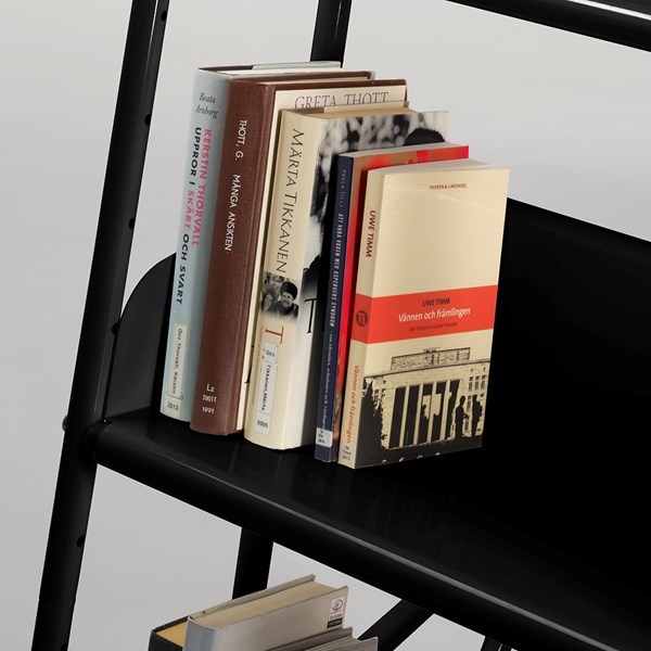 Die Neigung des Wagens sorgt für eine sichere Medienunterbringung und bietet eine gute Übersicht über die jeweiligen Bücher.