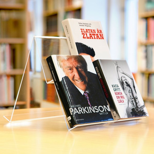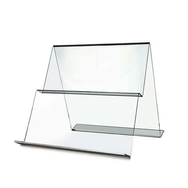 Stapelbarer, doppelseitiger Acryl Ständer zur Präsentation auf zwei Ebenen, der Ihnen eine hohe Kapazität bietet.