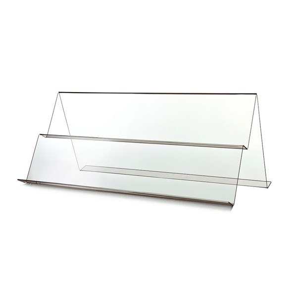 Stapelbarer, doppelseitiger Acryl Ständer zur Präsentation auf zwei Ebenen, der Ihnen eine hohe Kapazität bietet.