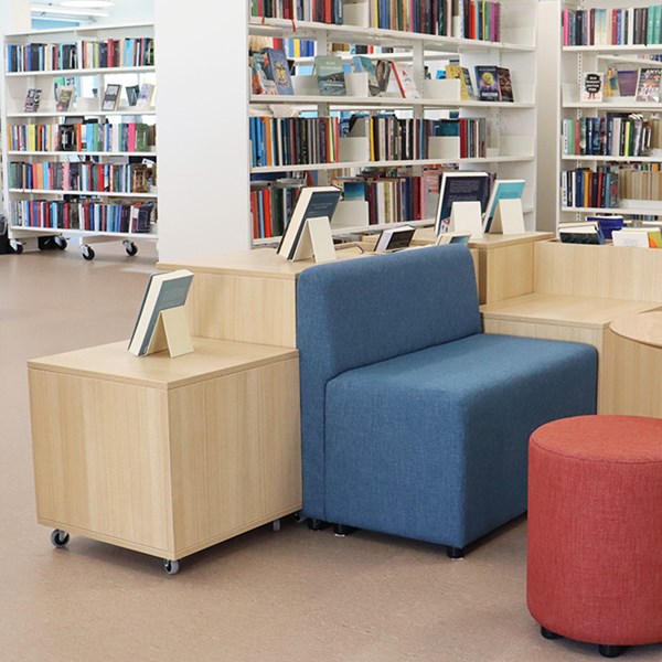 Vielseitiger, stapelbarer Ständer für die Präsentation von Büchern und Medien.