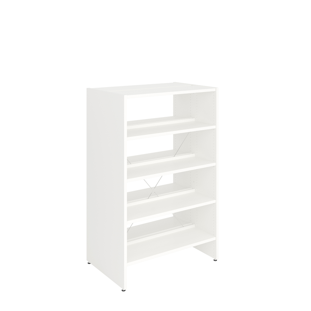 Wählen Sie aus drei Standardhöhen mit verstellbaren Fachböden mit Buchanschlag für maximale Flexibilität. Die oberen, unteren und mittleren Fachböden müssen befestigt werden, aber die anderen Fachböden können leicht versetzt werden.